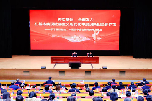 报告会上,朱从明以《夯实基础 全面发力 在基本实现社会主义现代化中展现新担当新作为》为题,从“深刻认识党的二十届四中全会的重大意义”“全面把握党的二十届四中全会的重要精神”“全面开启‘十五五’江苏人社高质量发展新篇章”“全力以赴抓好全会精神贯彻落实”四个维度,对党的二十届四中全会精神进行了系统阐释和深入解读。